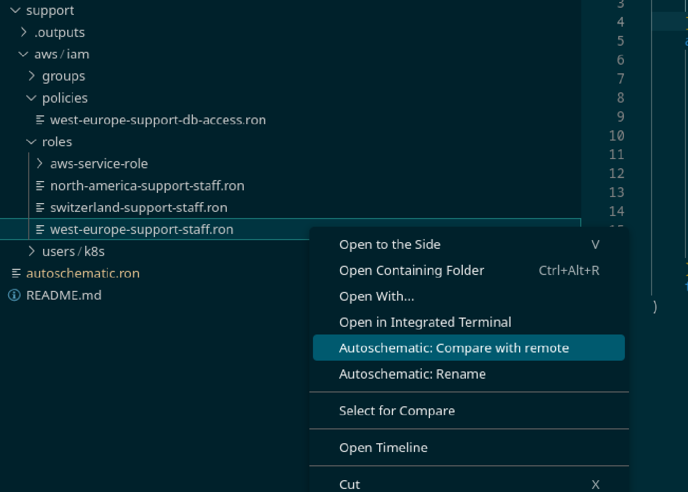 First, just to show off a little, we'll use the Autoschematic extension for Visual Studio Code to see how the files above compare with the real state: