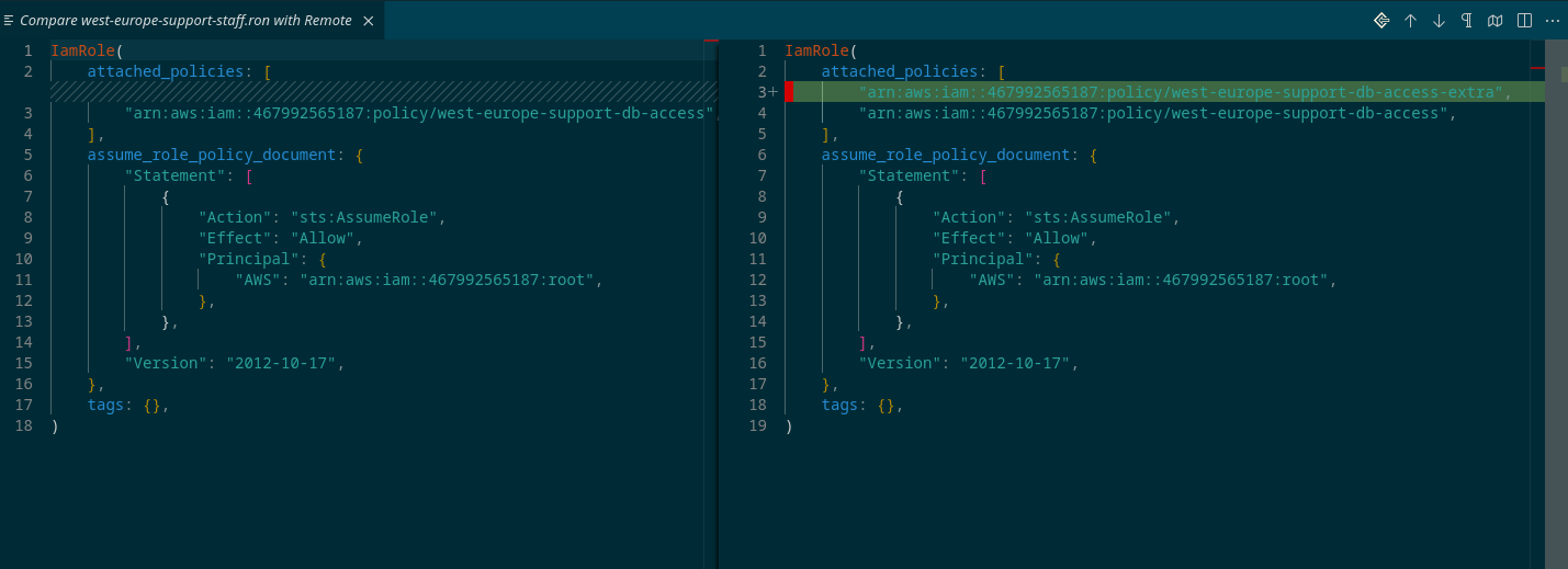 Once we've pulled state, we're free to move on to the actual task assigned to us: to create a new IAM policy granting access to the customerdb-auxiliary-eu-west-*