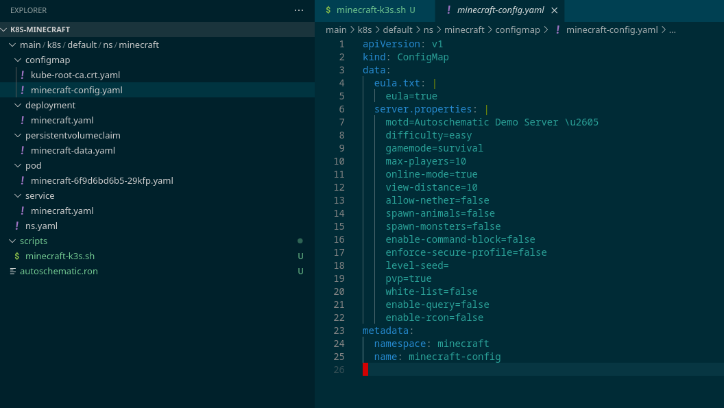 Cool! Now, the deployment should spawn a new pod with your updated configuration. You can connect to the Minecraft server on the address localhost:30065.